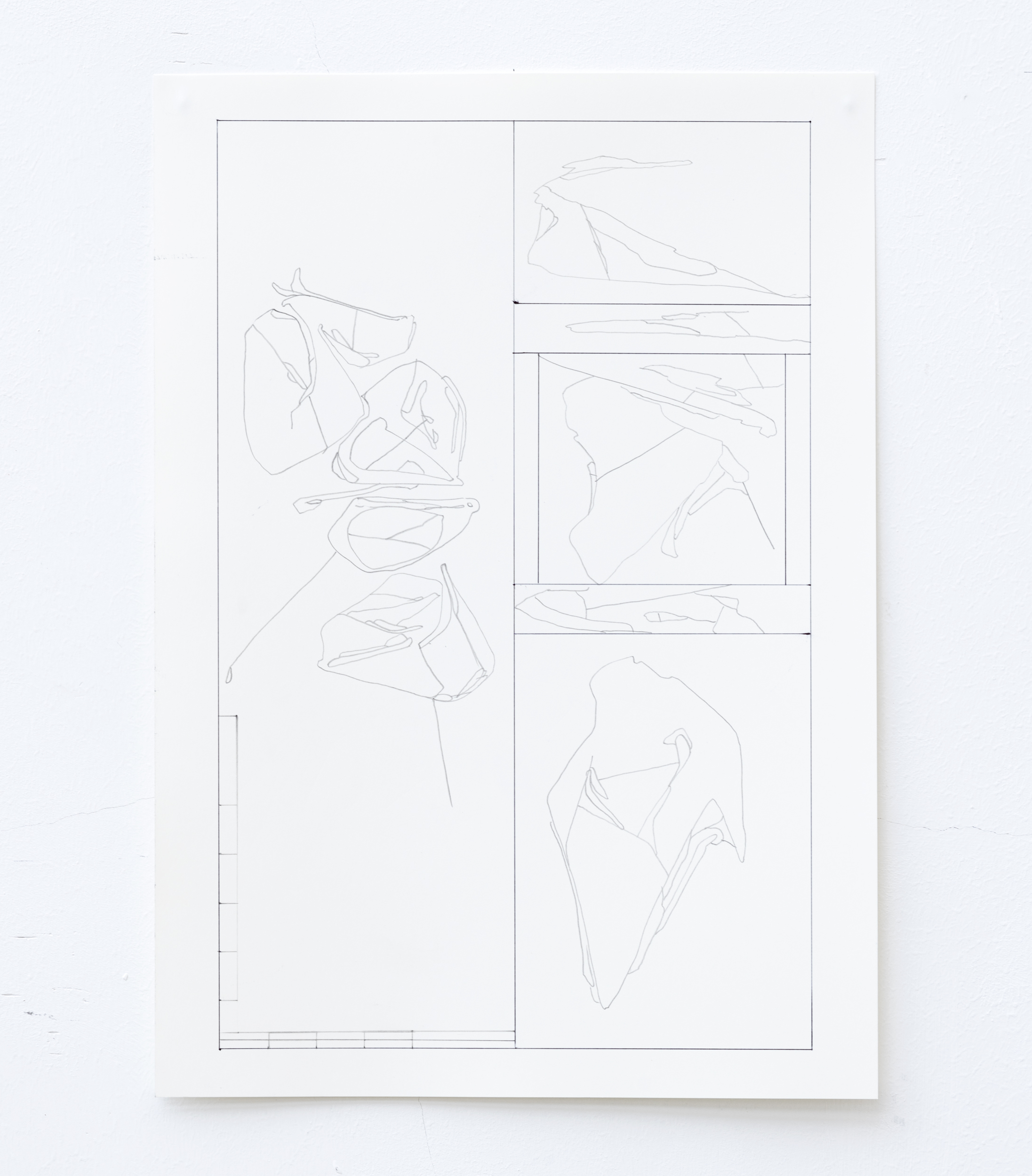 Hansaallee, Düsseldorf, 2024. The installation has no title, but seeks to unfold in a loose constellation of references and overlapping, subjective narratives. The installation remains searching for a plateau while understanding its’ own making as a continuous derive.
